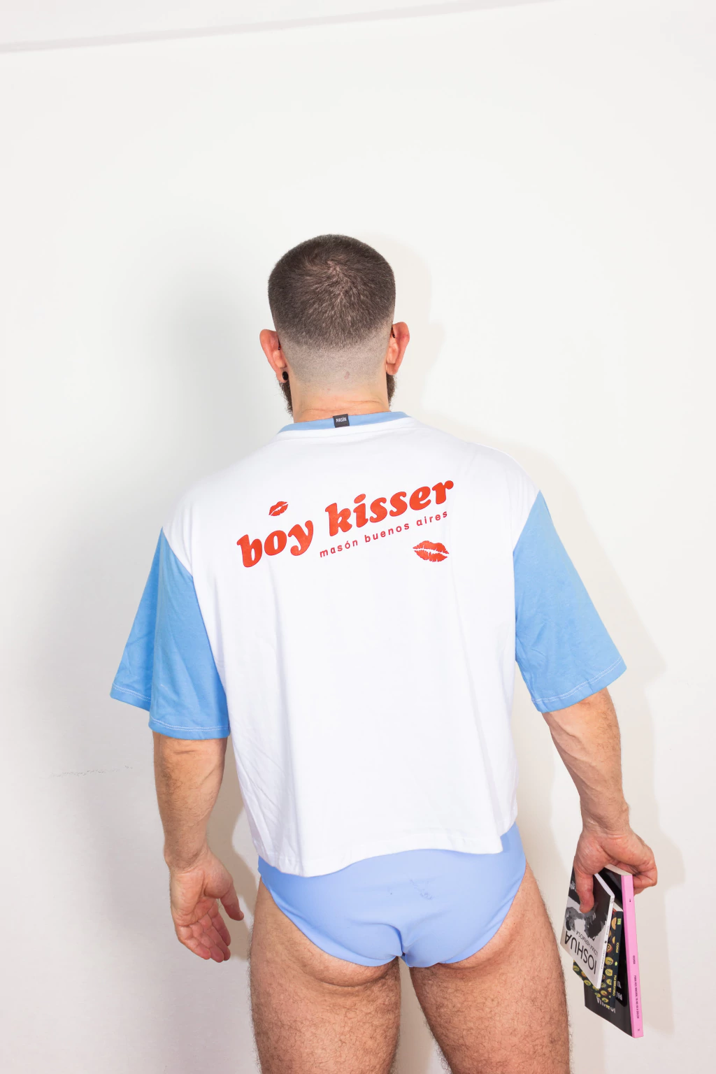 Lleva estampado en el frente unos besitos y una frase central en la espalda.